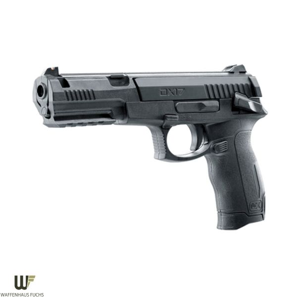 Die Umarex DX17 ist die perfekte Luftpistole für den Freizeitbereich. Sie verschießt 4,5 mm Diabolos und BBs und hat einen praktischen eingebauten Munitionsbehälter, der 15 BBs fasst. Die DX17 verfügt über eine integrierte Picatinny-Schiene, eine Fiberoptikvisierung und einen ergonomisch komfortablen Griff. Der gezahnte Schieber erleichtert das Greifen und Laden, und die hochklappbare Ladebuchse erleichtert das Laden mit BBs.